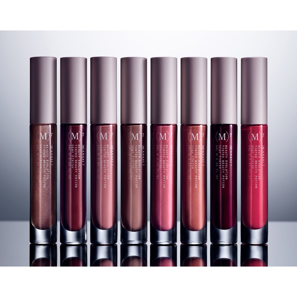 (M)ANASI7 Tinted Beauty Potion CASSIS je certifikovaný organický lesk s multifunkčním použitím na rty, tváře a oči.