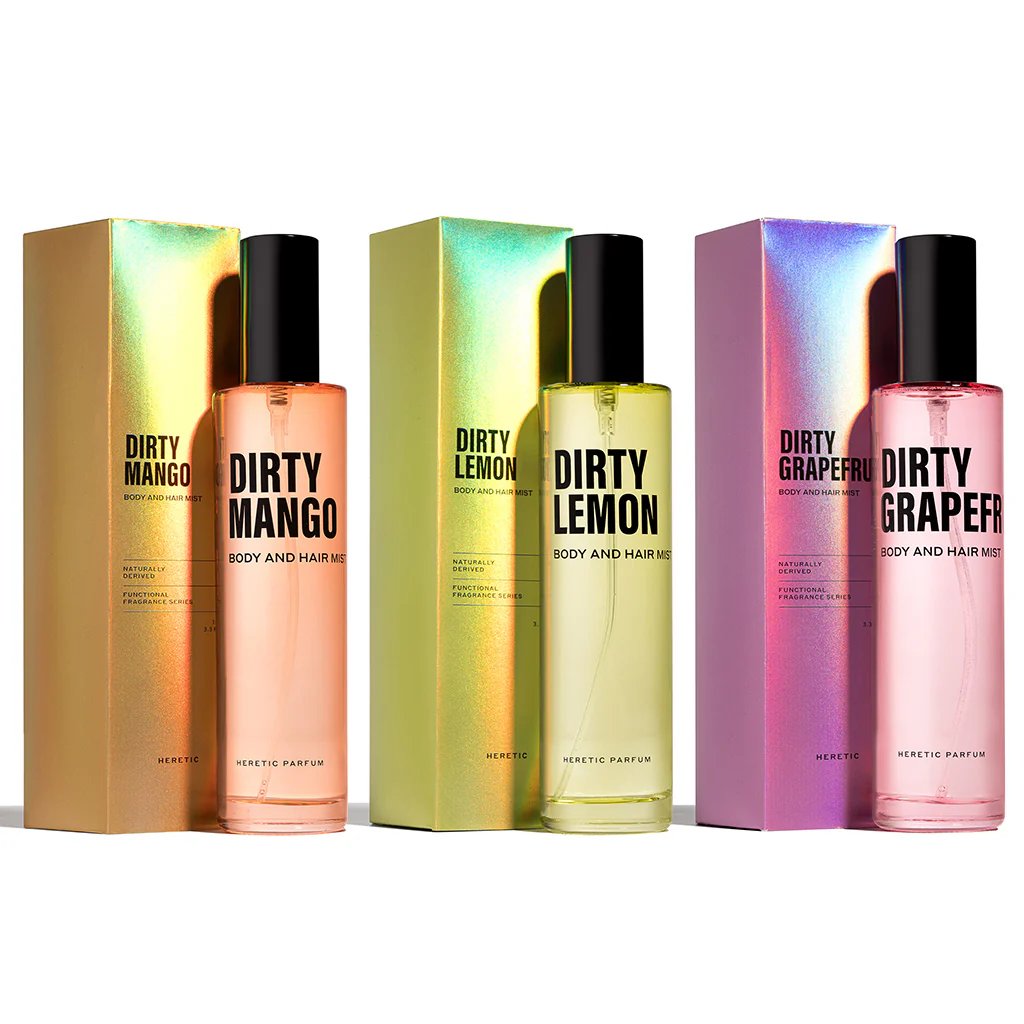 Heretic's Body & Hair Mist jsou složeny z patentované směsi přírodních složek a bezpečných syntetických látek. Výsledkem je čistá, netoxická vůně vhodná pro vegany.