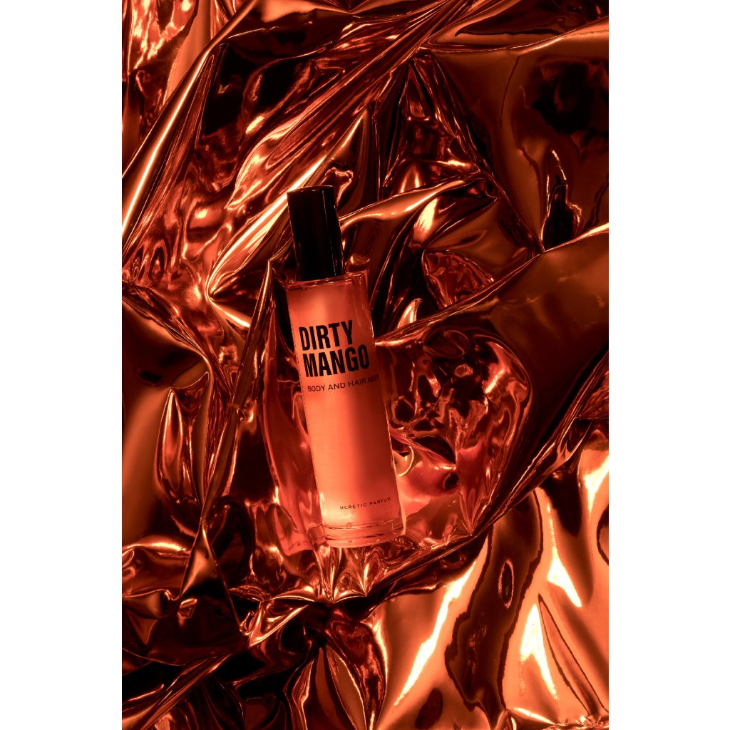 Heretic's Body & Hair Mist - Dirty Mango z přírodních rostlinných ingrediencí nabízí příjemně lehkou a čistou vůni. Tóny zralého manga se mísí s černým rybízem a povzbuzujícím bergamotem, zatímco jemné, jasné dřeviny dodávají vůni hladký závěr.