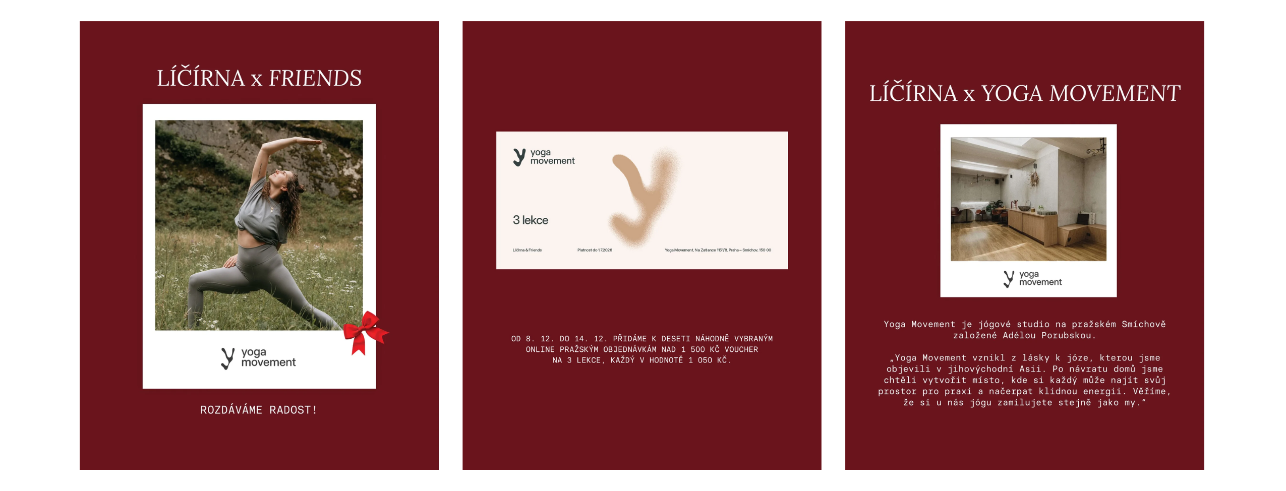 Prosinec je měsíc, kdy u nás v Líčírně nejraději zpomalujeme, rozsvěcíme světýlka a děláme radost. A jak už je u nás zvykem, nechceme si tuhle atmosféru nechávat jen pro sebe. Proto jsme i letos připravili adventní akci LÍČÍRNA & FRIENDS, během které vám spolu s našimi milými dlouhodobými partnery budeme rozdávat dárky k online objednávkám. Každý týden až do Vánoc se můžete těšit na jiný dárek — vždy hodnotný, krásný a od značek, kterým sami věříme a které máme opravdu rádi.